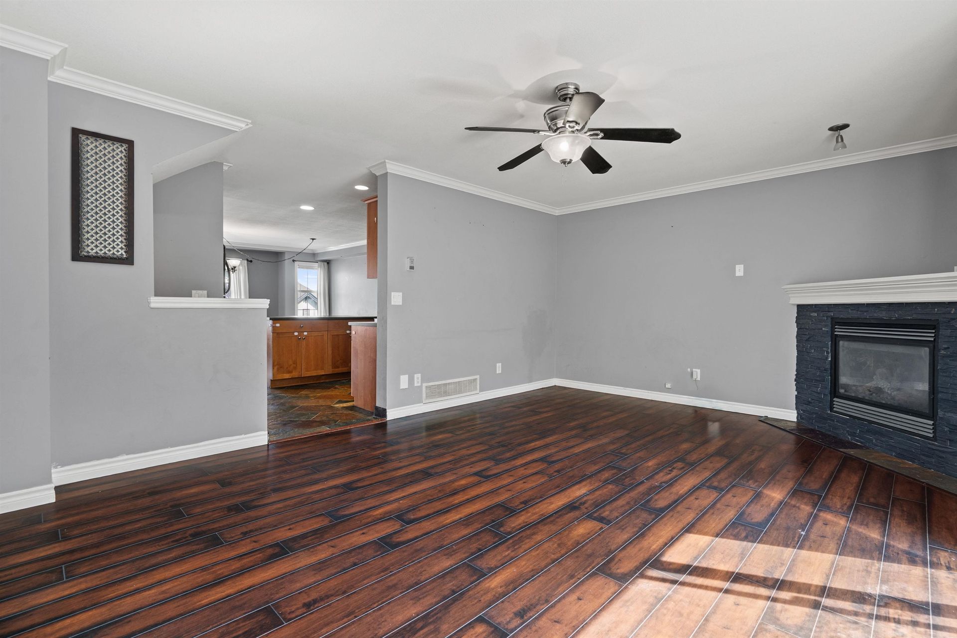 Welcome to this spacious 3 bedroom + 3 bathroom townhouse offering 1,800+ sq. ft. of functional living space in desirable Promontory mtn across from Jinkerson Park. The entry level includes a versatile rec room which could be a home office, or playroom with powder room. Main floor features an open-concept living and dining area with oversized windows, rich flooring, and a cozy gas fireplace that flows seamlessly into the kitchen with ample cabinetry and counter space. Step through sliding doors to your fenced yard, perfect for entertaining. Upstairs you’ll find three generous bedrooms, including a large primary bedroom with walk-in closet and ensuite, plus the convenience of laundry on the same floor. Family-friendly layout, plenty of storage, and an unbeatable location. Move right in!