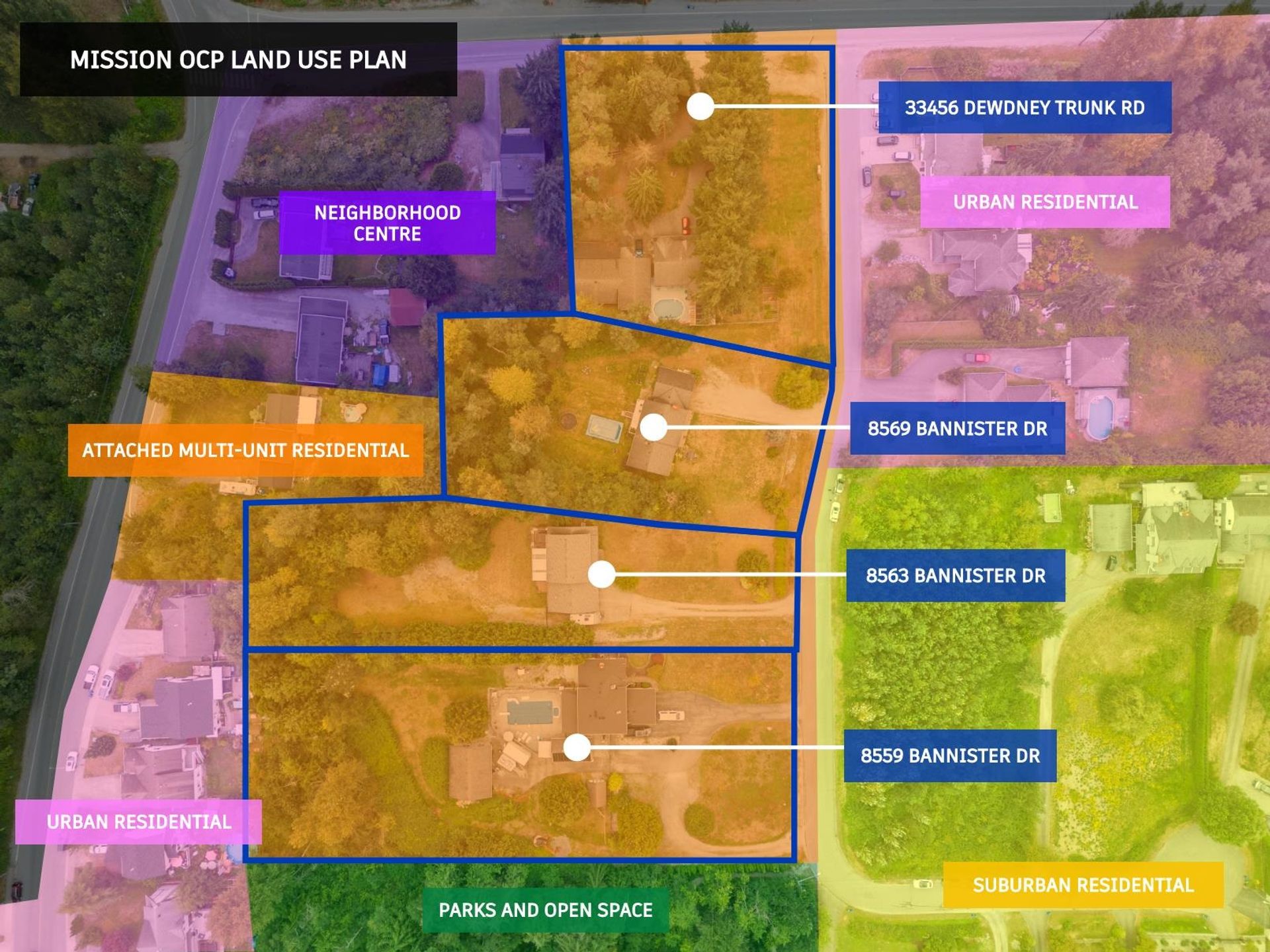 Amazing Value! Designated Multi Unit attached in the Mission OCP- this property is poised for multifamily development- ideally townhomes! Within the Cedar Valley neighborhood, this area is undergoing rapid changes. Showcased by two large developments in the immediate area by reputable developers. The site is improved with a 3865 sqft home, inground pool, 2 bay detached workshop and storage shed all in a great setting. Water/drainage infrastructure already exists along Bannist…er with sewer connections coming from developments to the north. (construction underway). With a typical yield of 22 UPA on townhome land- you could potentially achieve 33-39 townhomes on this site. Also see listing R2919187/R2942902. DO NOT WALK PROPERTY WITHOUT A CONFIRMED APPOINTMENT. Call for a full information brochure.